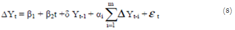 ΔYt = β1+ β2t + δ Yt-1 + Ut..............(7)