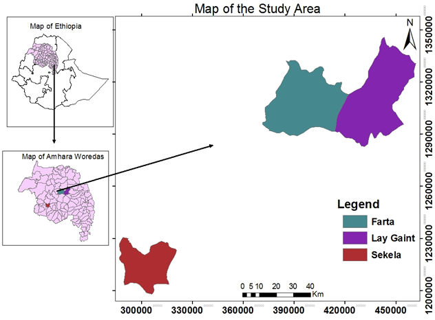 Description of the study districts is represented in Table 1 and Figure 1. The study was conducted in Farta and Lay Gayint districts in South Gondar Zone and Sekela district in West Gojjam Zone of Amhara Region, Ethiopia.