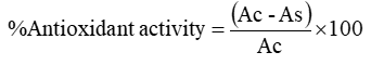 Where Ac and As are the absorbance of control and sample, respectively. The control contained 100 μl methanol in place of the curd sample.