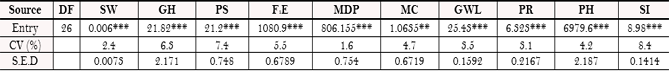 Table-1. Summary of the combined analysis of the analysis of variance of the measured traits in the maize genotypes.