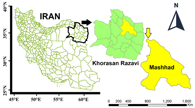 Figure-1. Location of the study area (Mashhad) in the Khorasan Razavi province, northeastern Iran.