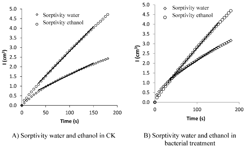 It is important to note that ethanol sorptivity is only affected by the geometry of soil pores, while water sorptivity is affected by the geometry of soil pores and the hydrophobic surface of the soil. Therefore, Sw and SE indices are useful for determining whether soil pores or soil hydrophobicity has changed after treatment (Feeney et al., 2006).