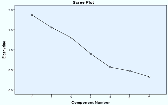 Principal components with Eigen values greater than or equal to one was retained for determining the number of components in the present study. At the time of selecting variables from the various extracted dimensions, greater and positive values from rotated component matrix (Varimax rotation method) was selected from their respective dimensions.