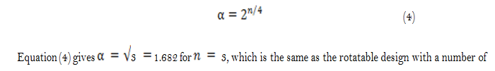 In this particular study, turning process was studied using RCCD to select cutting parameters at 3 factors. For the CCD the rotation criterion is given by equation (4) as