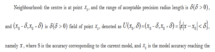 Based on the definition of functional and compound function, it is known that the precision of the model is a definite value, but it is affected by the principle of model formation and the external environment, so there is a corresponding relationship between the precision of the model and the principle of model formation and the external environment. When the corresponding mapping function is established, the model precision and the influence variable constitute a composite function, and when the corresponding mapping function is variable, the model precision becomes the function of the function, thus constituting a universal multivariable function, the mathematical expression of which is as follows: