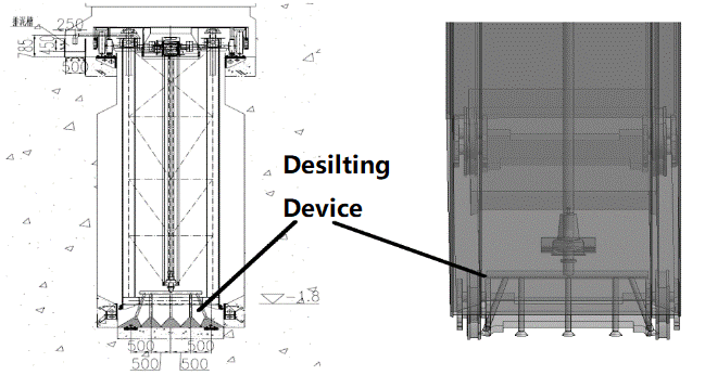According to the design requirements of the overall process flow, after the operation, maintenance and emergency demonstration and disposal of the metal structures such as the internal and external gates, movable bridges and working valves of the lock, it is found that the silt removal devices need to be added at the gateway to ensure the normal operation in the future, as shown in Fig.5.