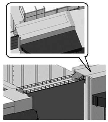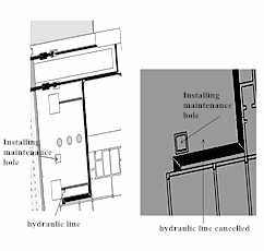 From safety, coordination and convenient construction, using BIM immersive roaming virtual platform combined with 3D printing entity model, the overall outline of ship lock project, the connection section of pedestrian passage and the installation of equipment and facilities are simulated and checked. Finally, the ship lock gate top added a railing and step, connect the top of the east gate (gate storehouse) and lift the height of the top surface to 8.80m, set up the step to connect with the new platform on the east side of the ship lock. Then, the setup of repair holes is adjusted, and the direction of the hydraulic pipeline was changed. The correlation diagram can be seen in Figure 6 and Figure 7.