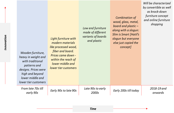 Currently, Bangladesh is manufacturing a divergent amount of furniture domestically and has been able to achieve the major market share by providing the international standard quality. Previously, this industry got accustomed to greatly depend on imported furniture from Thailand, Malaysia, and India to fulfill the growing consumer demand. Figure 1 shows the innovation trends of furniture industry of Bangladesh concerning time.
