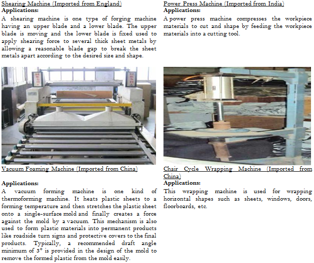 Figure-3. Applications ofexisting machinery and technologies used in furniture industry of Bangladesh.