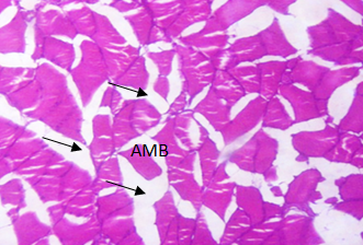 Plate-1.2b. Photomicrograph of fillet section in H. fasciatus of Igun reservoir (Mag. X40).