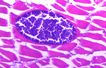 Keys: atrophy of muscle bundles (AMB), degeneration in muscle bundles (DMB), parasite cyst (PC), splitting of muscle bundles (SMB), splitting of muscle myofibrils (SMM).