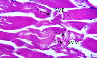Also, atrophy and splitting of muscle bundles revealed in the fillet of H. fasciatus in Opa and Igun reservoirs was likewise recorded by Ramesh and Nagarajan [28 ] in the muscle of Clarias batrachus. The degeneration of muscle bundles seen in the fillet of H. fasciatus in Opa reservoir was also reported by Kaoud and El-Dahshan [29 ] in the muscle of O. niloticus. It can thus be suggested that different alterations observed in the fillet of H. fasciatus in Opa and Igun reservoirs could be due to the presence of various contaminants in the reservoir.
