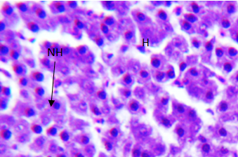 Plate-1.3b. Photomicrograph of liver section in H. fasciatus of Igun reservoir (Mag. X100).
