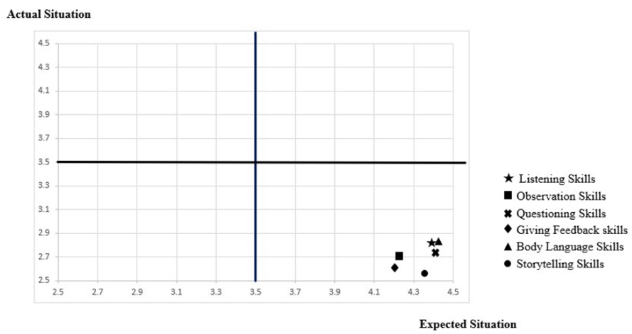 = 4.34, SD = 0.46). The expected situation for all skills was at a high level. The highest expected situation was Body Language Skills (