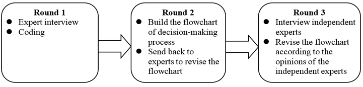 The DSA method constructs flowcharts of the decision-making stages that involve managers' interactions. In this study, a three-round interview process was implemented (see Figure 2 ).