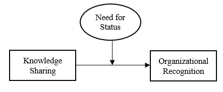 Note: The framework in Figure 1 provides a proposed model for the research, suggests that a hidden motive to share knowledge depends on organizational recognition. The relationship can be strengthened through the moderating role of the need for status.