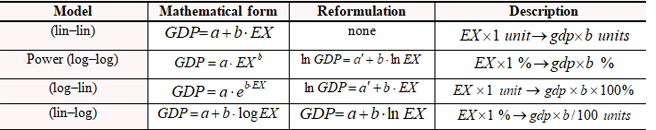 We used a quantitative method to assess the effect of education expenditure on the development of the Saudi economy. The method used employs various mathematical formulations, from which we select the most appropriate that reflect this relation. Table 1 provides the combination of different formulations that we can use in this study to explain this relation, namely the power model, exponential model, and logarithmic model.