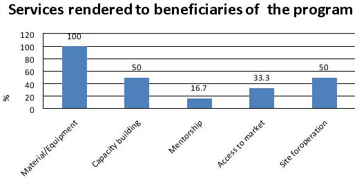 The figure hereunder indicates the responses by respondents on the type of services received from the program.