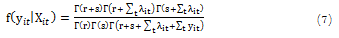 is randomly distributed as a beta variable Beta (r,s) (Hausman, Hall, & Griliches, 1984). Based on the outcomes of Hausman et al. (1984)+ the RENB density function for the ith HRL can be written as follows (Ma et al., 2017):