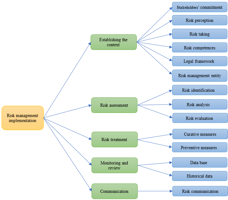 On the other hand, many authors have described and analyzed the main challenges of risk management adoption in the public sector. For instance, Alijoyo and Fisabilillah (2021) conducted a study to understand the issues and challenges that public sector organizations face in implementing the ISO 31000 standard. Indeed, they specified that governance and human factors are the main challenges Indonesian public sector organizations must overcome. Also, they observed a rising awareness of the importance of risk management in public sector organizations’ performance and success. Moreover, they stated that there is a need, relevancy, and urgency to adopt specific guidance concerning the implementation of risk management standards.
