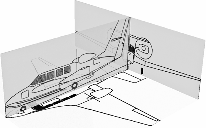 To create the preliminary design, a set of graphic information should be available in the form of photos (Fig. 1) and drawings of object modeled (Fig. 2). Be-103 amphibious aircraft has following overall dimensions: wingspan 12.72 m, length 10.56 m, height of 3.76 m. The processes of 3D-modelling starts from creation of three perpendicular planes, then the images of projection drawings are placed in these planes [11]; [12]. Unlike article [11] all stages of three-dimensional simulation of the amphibian aircraft structural segments as well as specific features of development and assignment of the materials, scene illumination sources installation, will be presented in the this work. This method was tested during the computational modeling of Be-200 amphibious aircraft [13].