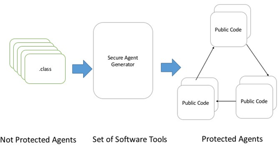 However, we found some limitations using the static component because it does not allow the modification nor creation of new .class files. We notice that this step is essential to achieve our target. For this purpose, we use the dynamic component. This component has ClassGen as the main class of the dynamic component. This provides functionalities for the creation of an empty class. Additionally, we have the possibility to add dynamically components to pack into a “.class” file. Once the tool has been introduced, let us analyze how to digest input files, that is, the set of input agents and the output is the set of classes that represent protected agents using the static strategy.