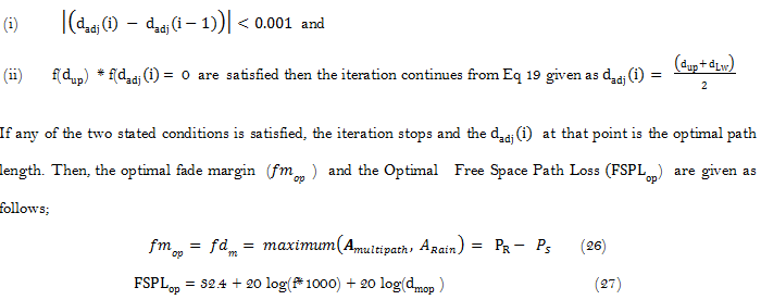 Table-3. Bisection Method: Initial and Optimal Values For Free Space Path Loss, Fade Depth , Fade Margin, Received Power , Differential Fade Depth , Differential Path Length , Path Length and Convergence Cycle