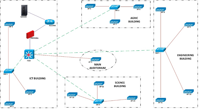 In this study, a passive tool was used to assess and monitor the internet network setup of Olusegun Agagu University of Science and Technology Okitipupa. The University's server was connected to a central network, as shown in Figure 1, with the sampling points for this study in Table 1. This work was carried out based on the primary data from the assessments and monitoring of OAUSTECH's network in September 2017.
