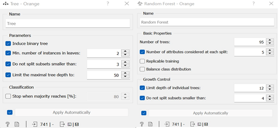 Using the Excel tool, we make our data into a more defined form by removing the unwanted column from the database. Therefore, the Orange tool handled the missing values by imputing the removal of the rows with missing values, as shown in Figure 2. By selecting the parameter assigning missing values, we removed the rows with the missing values in the data. Therefore, Figure 3 shows the basic workflow to pre-process the data using the Orange tool. The raw data was uploaded in the form of a CSV file by using CSV import widgets. After that preprocess a widget was used to remove the missing values in the data and the data table widget was used to visualize the data after preprocessing. To save the preprocessed data, a save data widget was used.
