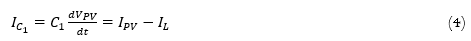 A DC-DC boost converter's current at the capacitor C1 with an inductor current I_L is defined as: