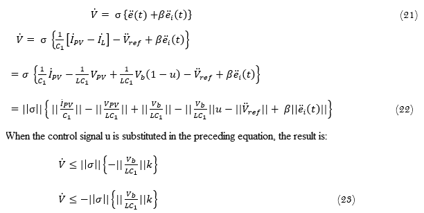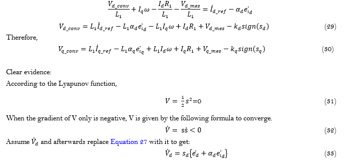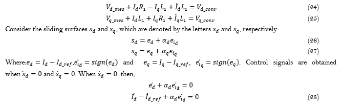 In this paper, a current-controlled three-phase voltage inverter is employed. The boost converter provides a steady DC voltage to the VSI. A three-phase inverter's output voltage is generated by driving the gates and switches. If the inductor currents and capacitor voltage are treated as state variables, the state-space representation [11, 18] of a three-phase VSI coupled to a grid is as follows: