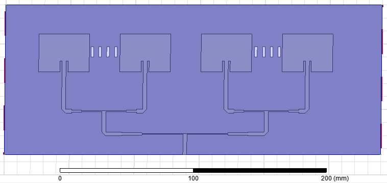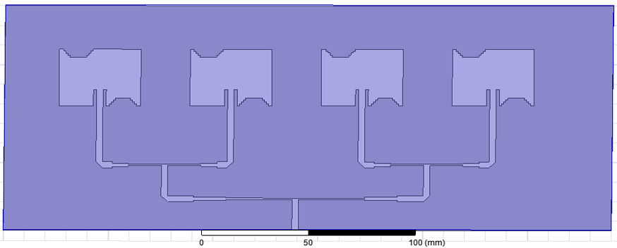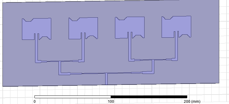 Figure 4. Simulation design of 4 element array antenna with step cut with quarter wave transformer.