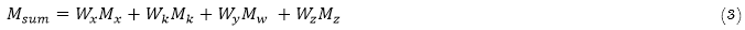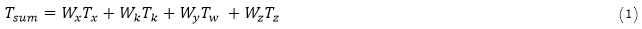 where the variables x, k, w, and e correspond to the four variables, respectively, and wi and ti are the value and predicted threat level values of characteristic i. where x, k, w, and e are the variables that correspond to the four variables. Under the assumption that all of the variables have the same level of importance, wi = 1, the formula or Equation 2 can be shortened to: