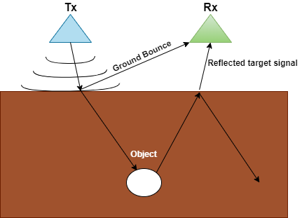 Due to computational requirements, the removal algorithm of this reflection must be accessible and practical. The reflection time of this signal is equal to the one-way electromagnetic wave propagation, which depends on the distance between the transmitter (Tx)/receiver (Rx) antenna pair and the ground [2]. In case of a constant distance from antenna pairs to the ground, such as a ground vehicle mounted GPR, the time index of the reflection signal would always be near the same depth bins. This time index of reflection could be used as a constant gating index. However, the time index could change when the vehicle is in motion. In addition, the GPR signal reflected from the ground always has a higher value than the searched targets. Therefore, the peak of the reflection must be tracked, and the B-scan must be gated according to this peak.