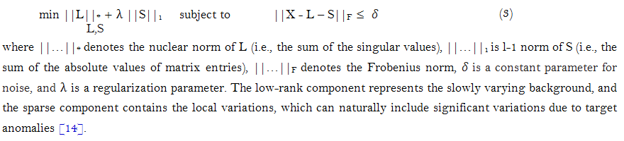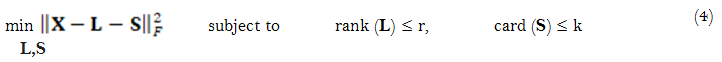 where L is the low-rank component, S is the sparse component, and N denotes noise. It focuses on finding a low-rank structure in high-dimensional data by solving the following optimization problem [13]: