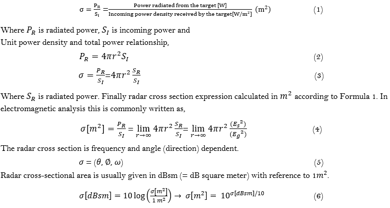 Radar cross section (RCS) can be defined as the electromagnetic energy captured by any object and re-emitted in the same direction. The RCS of a target is the equivalent area seen by radar. RCS has become essential for sending deceptive signals to enemy forces in miniature air-launched decoy platforms.