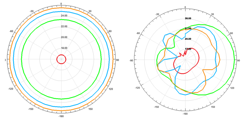 In Figure 6 , analyses performed for 1-4 GHz. In the left side, cylinder is seen without antenna, in the right side, cylinder is seen with antenna.