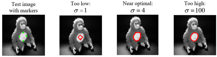The standard deviation parameter  plays an important role in the SSBF model. This parameter  will control the size of the neighbourhood in the SSBF formulation. Figure 5 demonstrates the segmentation results with different values of the parameter .