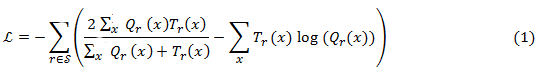 The mixture of Dice scores is summed over each class label, and the categorical cross‐entropy function: