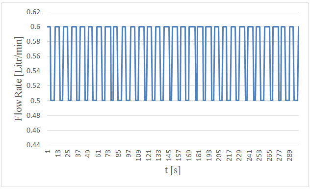 Figure-21. Measured flow rates versus time in 5. centimeters wave height and period of 5 seconds.