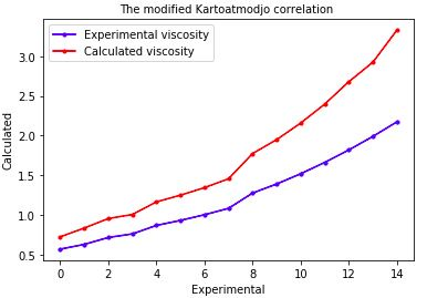 Figure-3. The comparison of experimental viscosity with calculated viscosity by modified Kartoatmodjo correlation