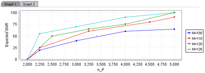 The fourth property is used to calculate the SNR when applied to images with a different number of pixels and different average intensity values. The y-axis in Figure 5 shows the expected SNR value and the x-axis shows the number of pixels. The SNR is directly proportional to the number of pixels and intensity value.