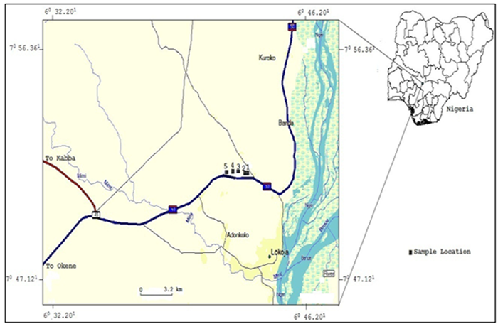 Figure-1. Map of Lokoja and its environs in the Middle Niger Basin showing sample locations (This study).