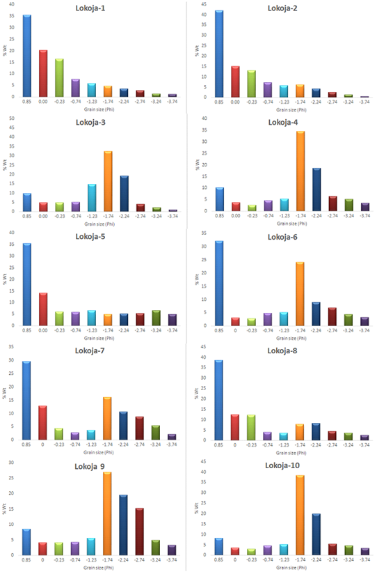 Figure-4. Histograms of the individual weight percent of the sediments (This study).