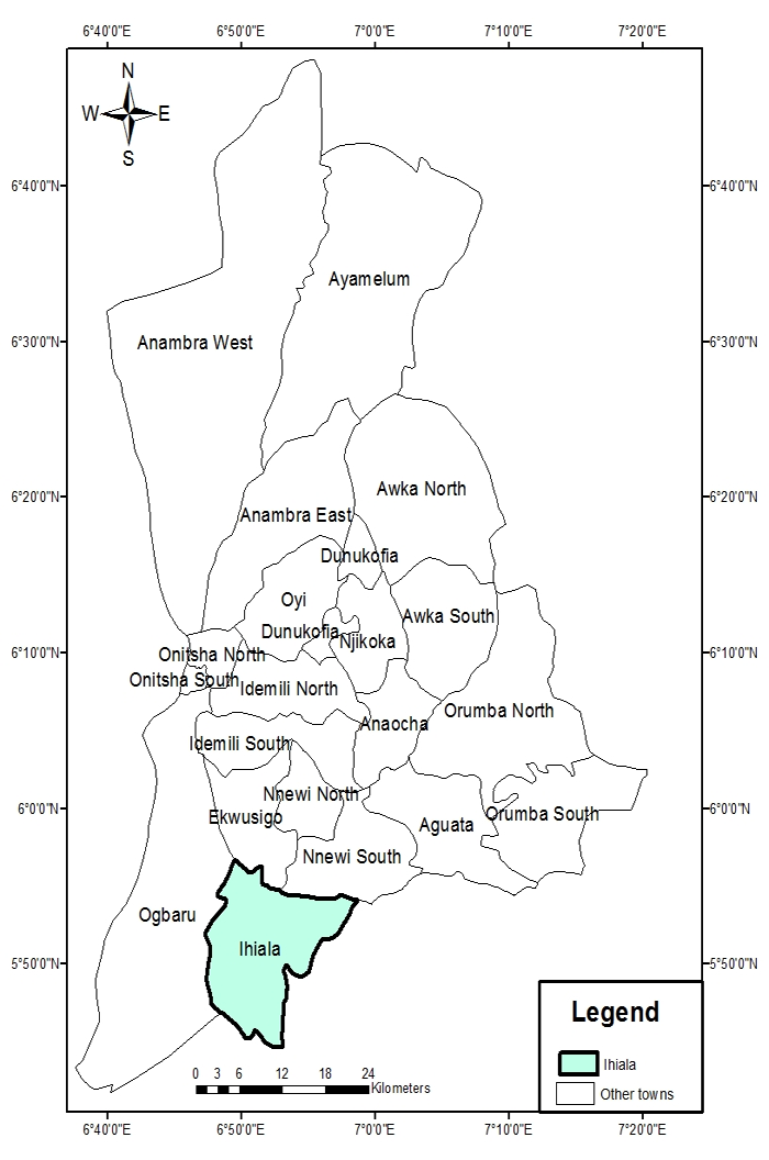 Figure-3. Map of Anambra State showing Ihiala local government area.