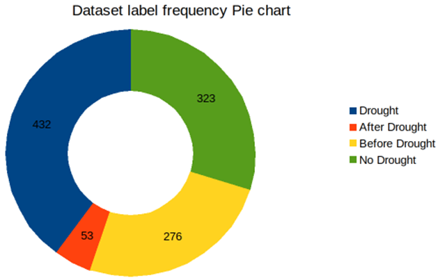 Dataset used in this research consists of satellite images which were taken from all 7 talukas of tharparkar district and labeled as pre-drought, drought, post drought and no drought. The Dataset consists of pictures from 2002 to 2020. This dataset is gathered using google earth pro. The Figure 2 shows the frequency of images for each class, there are 323, 432, 53 and 276 images for class no drought, drought, after drought and before drought respectively.