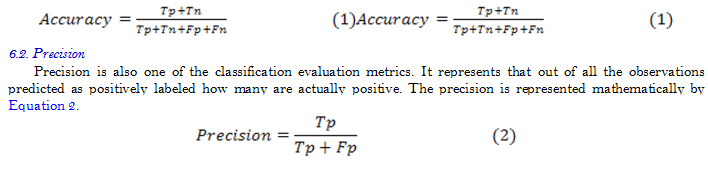 Accuracy has been the most widely used classification performance measure. Accuracy is measured among all the labels that algorithm predicted; how many were really correctly predicted. This is the ratio of labels accurately predicted and the amount of original labels. It is represented by Equation 1