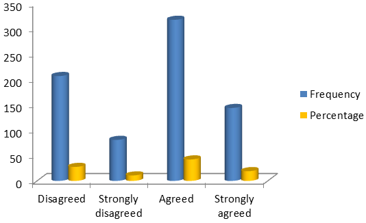The result as shown in Figure 3 revealed that respondents who disagreed with the said question in the questionnaire were 6%. Additional 33(4.4%) of the respondents acclaimed to strongly disagreed with the question. 282 (37.6%) of them consented to be in agreement that gas flaring has impacted negatively on the environment and health of the residents in the communities. This finding is in conformity with the submission by Nwanya (2011) that the deleterious impact of the by-products from flaring gas posses great risks to built-up environment, health and the social well being of the local communities residing close to flaring site. Also 390(52%) of the sampled household respondents whom strongly agreed with the question as stated in the questionnaire corroborated the studies by Efe (2003) and FOEN (2008) that gas flaring is a major contributor to the stock of greenhouse gases in the atmosphere thus adding to the climate change chaos and induce acid rains which pollute creeks and streams, damage vegetations and corrode roofs of buildings.