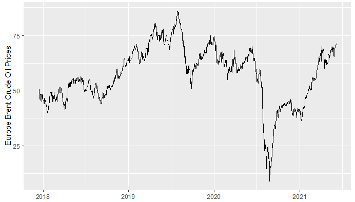 Figure-1. The plot of the price of Brent crude oil from 7th June, 2016 to 7th June, 2021.