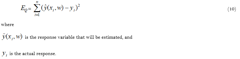 The weights are assigned to the connection between the different nodes in the network. The quadratic error function given in Equation 10 is minimized to obtain the value of all the weights.